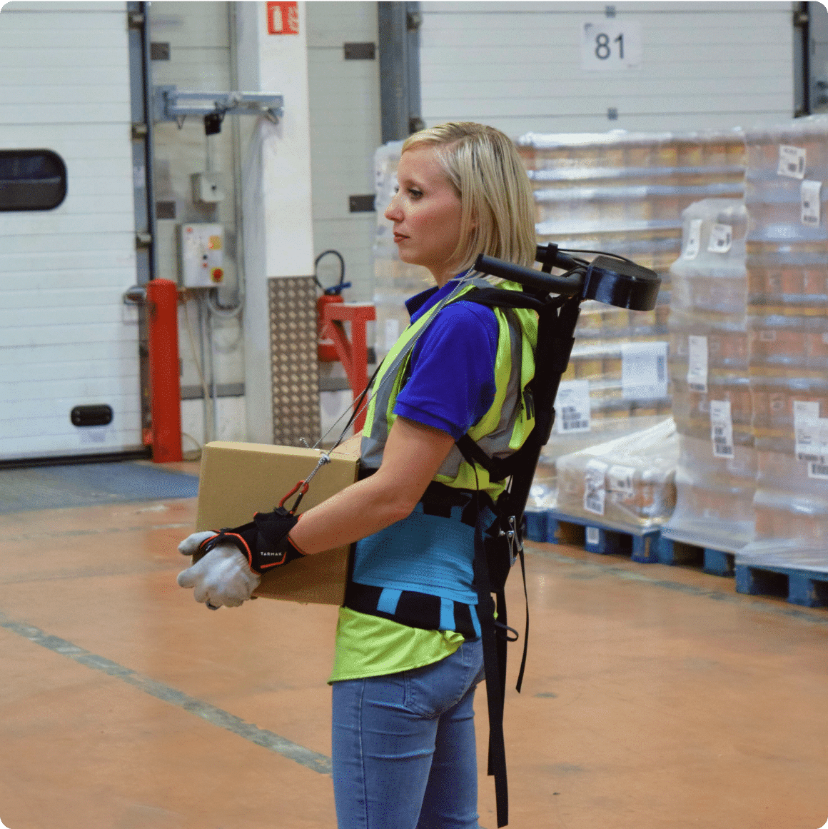 Equipped with a mechanical system, the user keeps his freedom of movement and his know-how at work, while reducing by 70% the muscular activity of the upper limbs and the back.